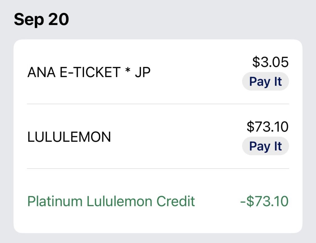 Resyは上手く使えば普段の外食費が浮くので、それだけで200ドルの元が取れそうです。ルルレモンも快適でおしゃれな人気のスポーツウェアブランドですね。ホテルクレジットも年間200ドル→半期300ドルに強化されました。旅行にたくさん行かないと、、、(笑)プラチナ所有で、今年の分はもう使ってしまっていた人は、さらに300ドル追加になったので超ラッキー!